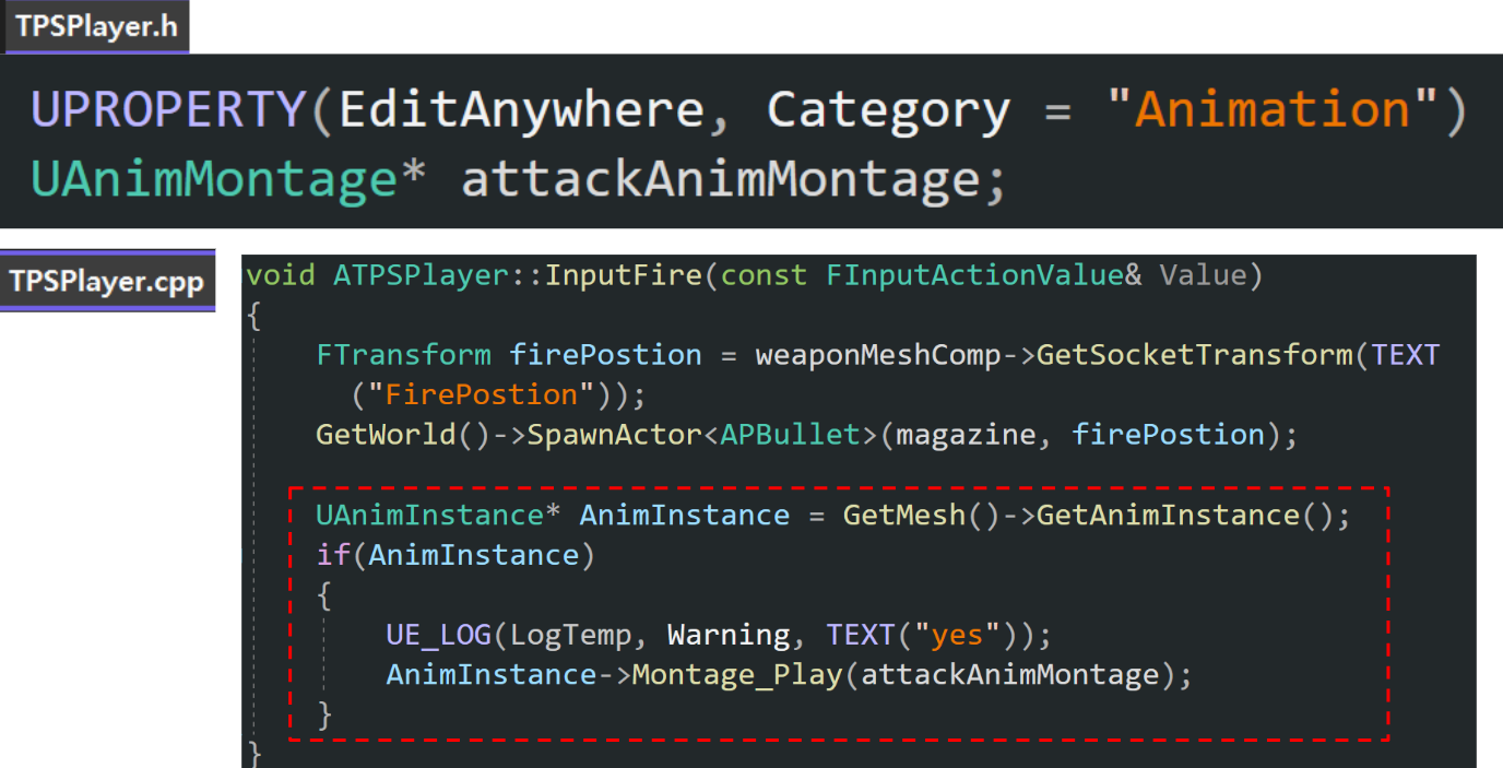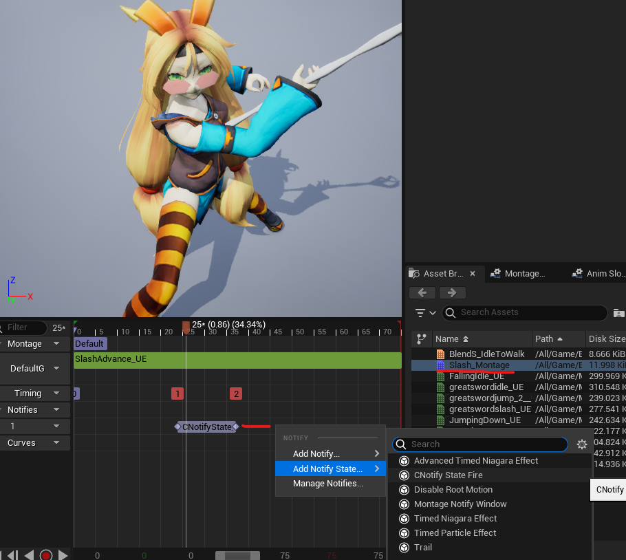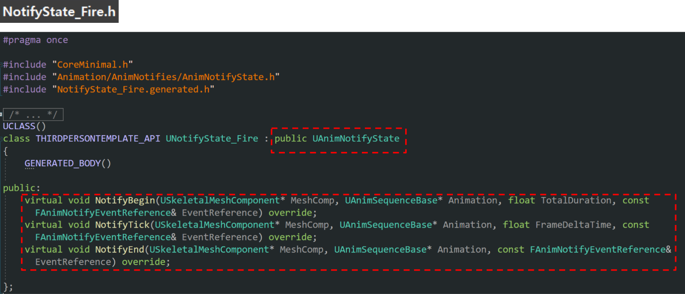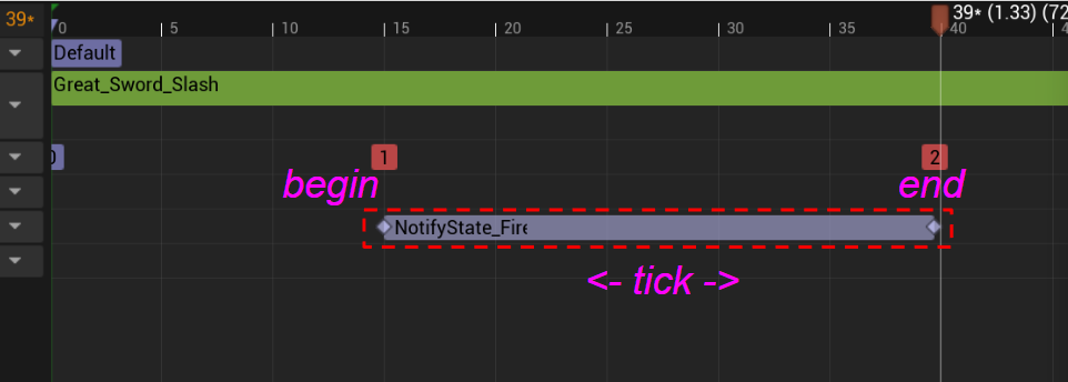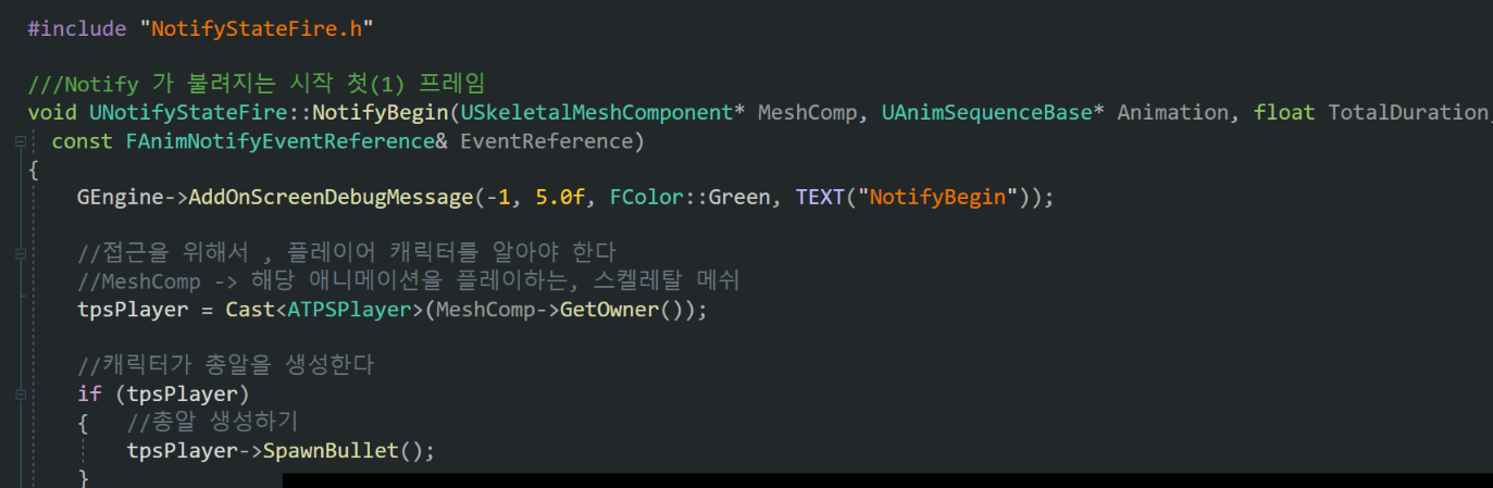 - UAnimNotifyState로 들어가 해당 해당 NotifyBegin(), NotifyTick(), NotifyEnd()를 가져와서 선언한다