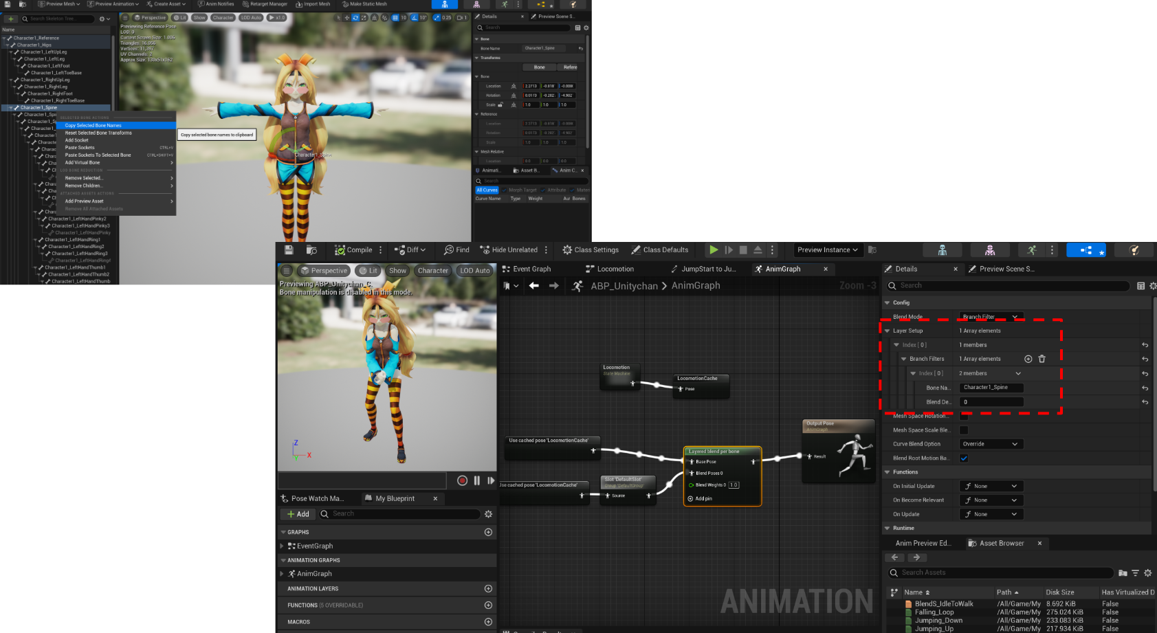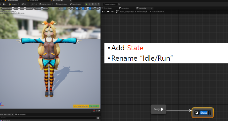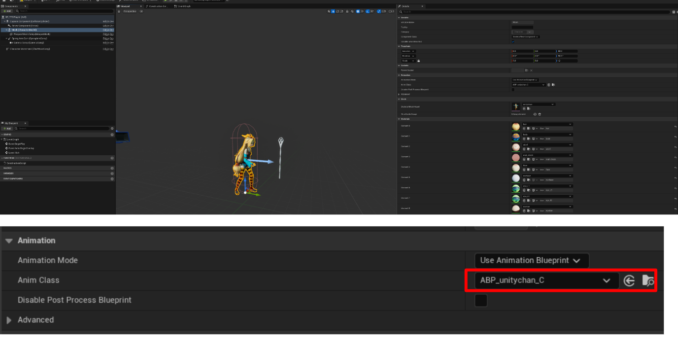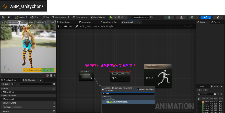 - 해당 애니메이션을 Character Blueprint에 넣어준다