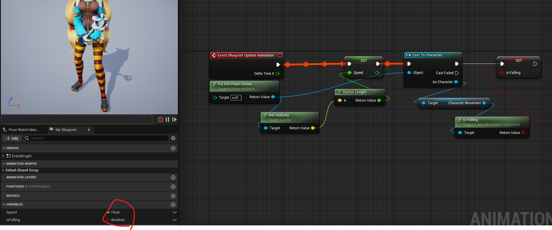 - 해당 애니메이션 블루프린트의 소유 Pawn을 Character로 Casting 함
