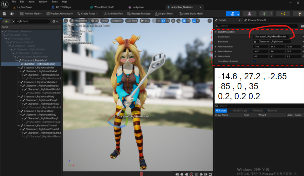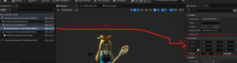 - 블루프린트의 WeaponMeshComp의 값을 0으로 Scale 값을 1로 맞춰준다