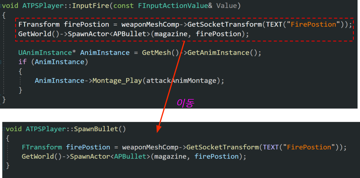- CTPSPlayer 클래스에 설정해둔 WeaponComponent를 수정 한다