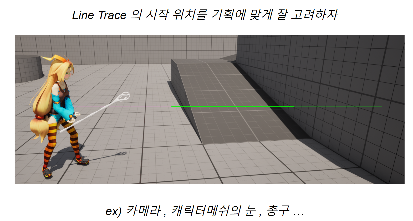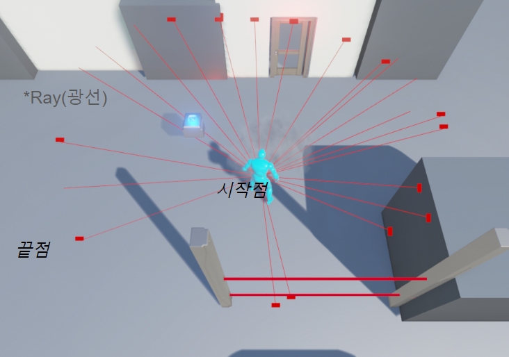 Line Trace는 특정 지점에서부터 직선 상의 충돌 감지(검사)를 수행하는 기능
