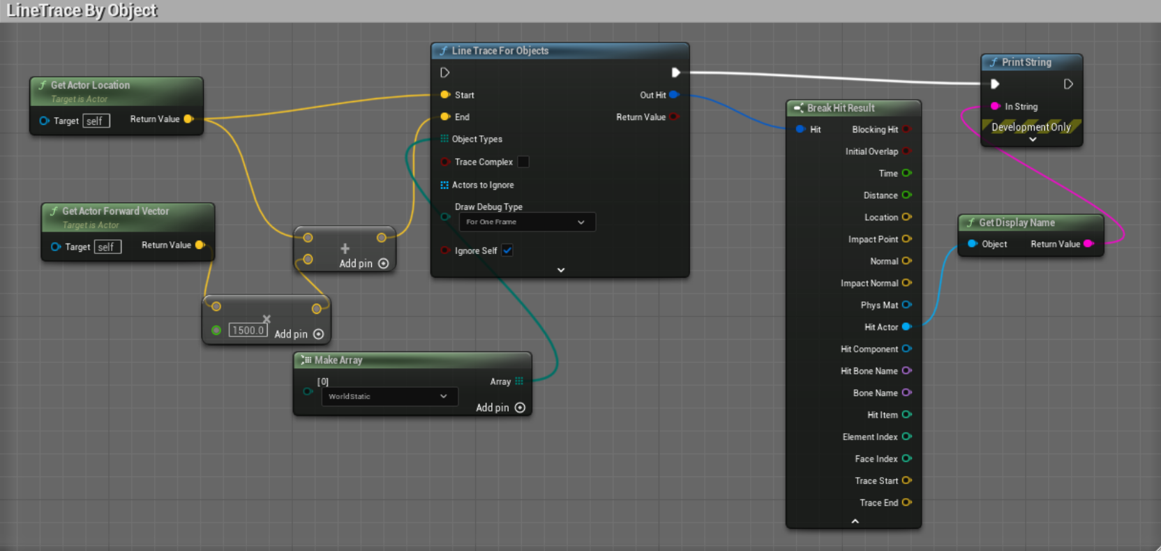 가 있으면 어떤 작업을 할 수 있도록 걸린 것을 반환합니다.블루프린트 LineTrace