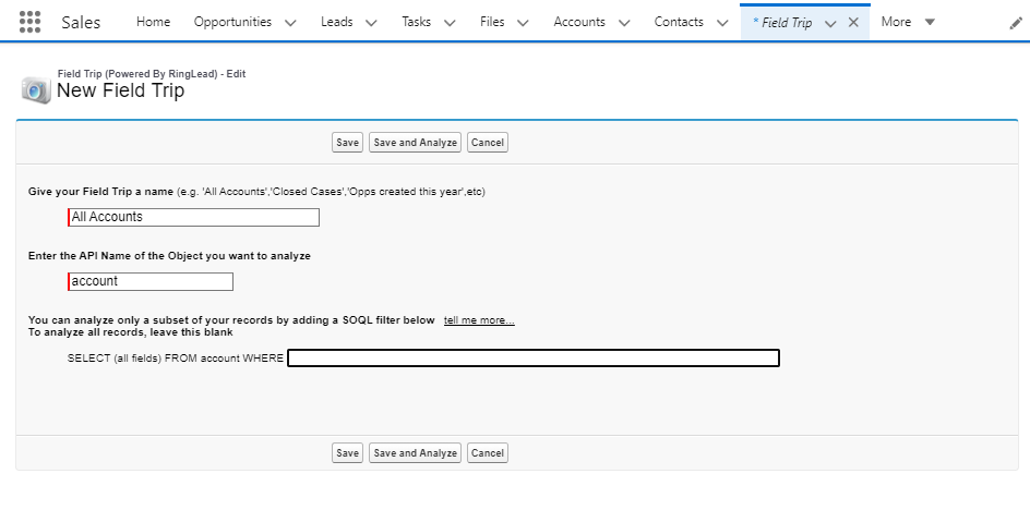 오브젝트의 API Name을 함으로써 분석하고 싶은 오브젝트를 선택할 수 있고 쿼리를 통해 조건을 설정할수도 있습니다.