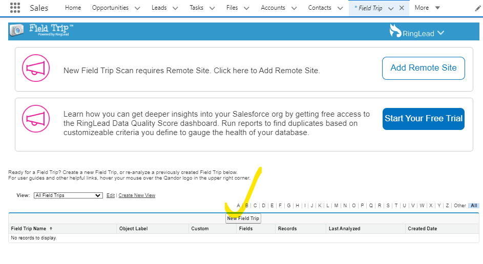 App Laucher를 통해 Field Trip에 접근하면 위와 같이 New Field Trip버튼을 통해 새로운 필드 사용 분석을 생성할 수 있습니다.