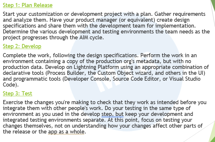 개발 및 테스트 환경 결정: 프로젝트가 AIM(분석, 구현, 유지 관리) 주기를 거치면서 필요한 다양한 개발 및 테스트 환경을 결정합니다.