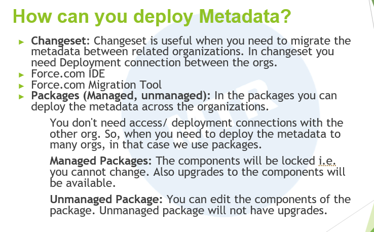각 배포 방법은 특정 상황과 요구 사항에 따라 선택될 수 있습니다. 예를 들어, 단순한 조직 간 메타데이터 전송에는 변경 세트를 사용하고, 대규모 자동화 배포에는 Force.com Migration Tool을 사용할 수 있습니다. 여러 조직에 메타데이터를 배포해야 하는 경우에는 패키지를 사용하는 것이 적합합니다.