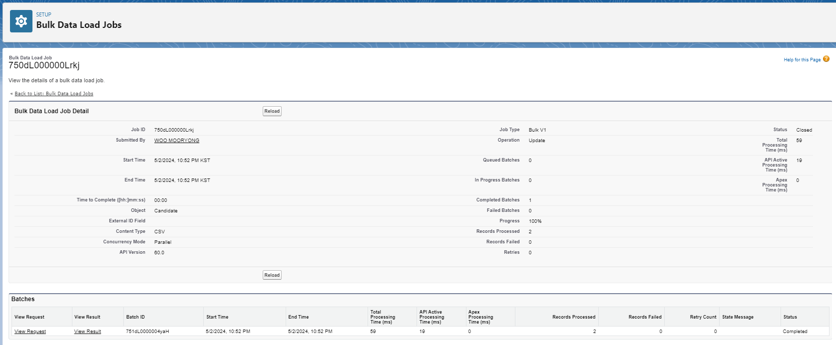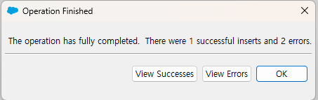 이를 통해 Data Loader를 통해 데이터를 Insert할 때 유효하지 않은 값들은 건너뛰고 진행한다는 것을 알 수 있습니다.
