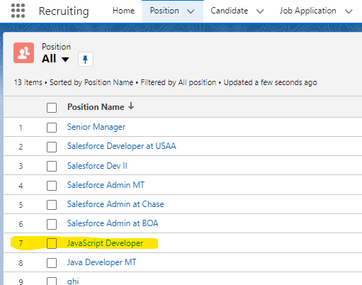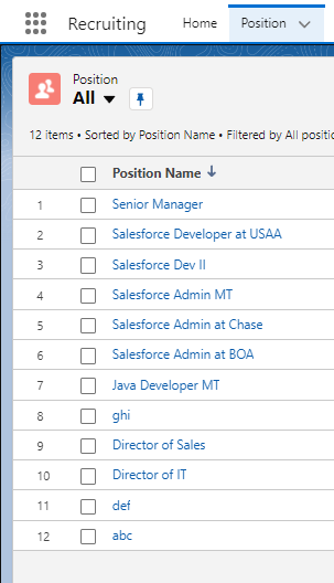 Recruiting App의 Position 페이지를 통해 새로운 레코드들이 정상적으로 등록된 것을 확인할 수 있습니다.
