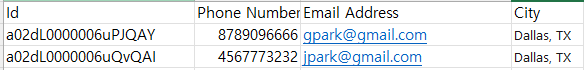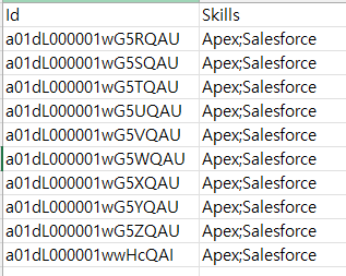 위와 같이 업데이트할 데이터를 포함한 파일을 준비했습니다. Skills Required필드는 Multi-select 필드이기 때문에 다수의 값을 넣기위해서는 ;으로 구분했습니다. 업데이트를 위해서는 Record ID가 필요합니다.