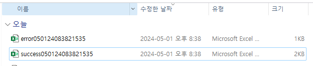 지정한 폴더에 가보면 Insert에 성공한 레코드와 error 레코드의 목록이 파일로 저장된 것을 볼 수 있습니다.