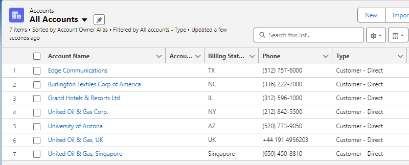 앱에서 필터를 통해 Type이 'Customer - Direct'인 레코드가 7개인 것을 보아 조건에 맞는 데이터를 정상적으로 추출한 것을 알 수 있습니다.