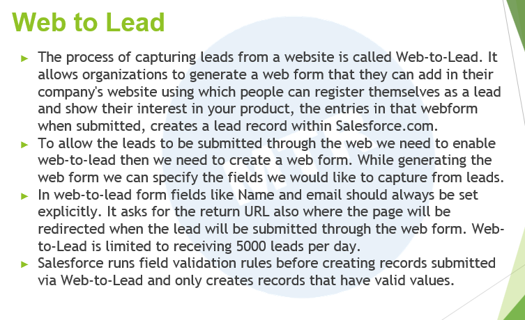 Lead 객체는 제품이나 서비스에 관심이 있는 사람의 정보를 저장하는 데 사용됩니다. 비즈니스 용어로는 잠재 고객을 의미합니다. Lead 객체는 회사에 대한 정보와 그 회사에서 일하는 사람의 정보를 포함할 수 있습니다. 따라서 Salesforce에서 Lead는 명함과 비슷한 것으로 생각할 수 있습니다.