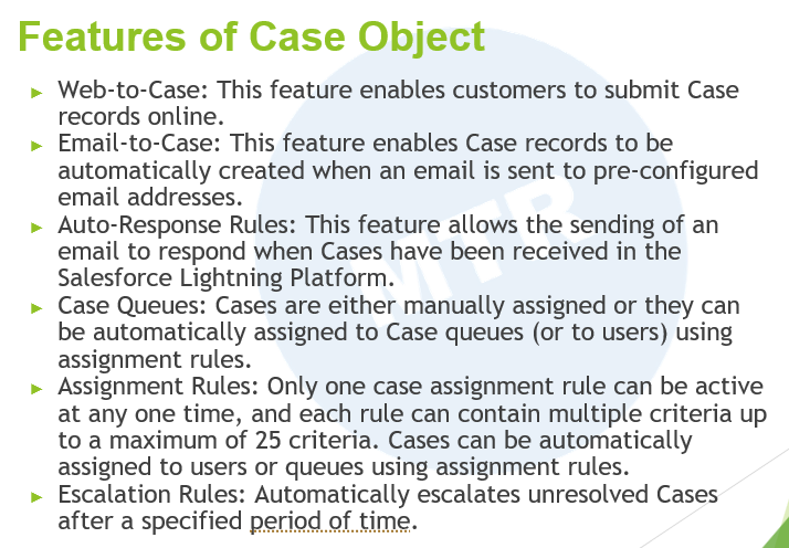 Case 레코드는 사용자들이 고객과의 전화 통화나 이메일 후 Cases 탭에서 수동으로 입력할 수 있으며, Salesforce CRM 내에서 Case의 자동화를 지원하는 다양한 기능이 있습니다. 이러한 Case는 Contact 레코드 및 Account 레코드와 연관될 수 있습니다.