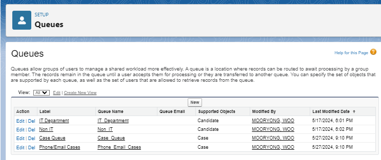 추가로 Phone/Email Caese를 할당할 큐를 생성했습니다. 아래에서 Case Assignment Rules를 정의하고 케이스들을 조건에 맞게 각 큐에 할당해보겠습니다.