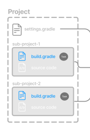 각각의 플젝들은 플러그인이나 빌드 스크립트에 포함된 하나이상의 task가 있음