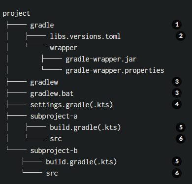 5. Gradle build scripts of the two subprojects - subproject-a and subproject-b