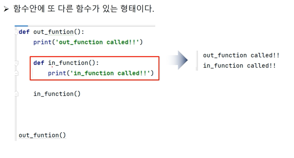 ㄴ 내부 함수를 함수 밖에서 호출해서 사용할 수 없다. 에러 뜸.