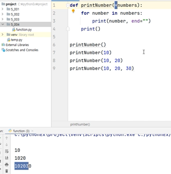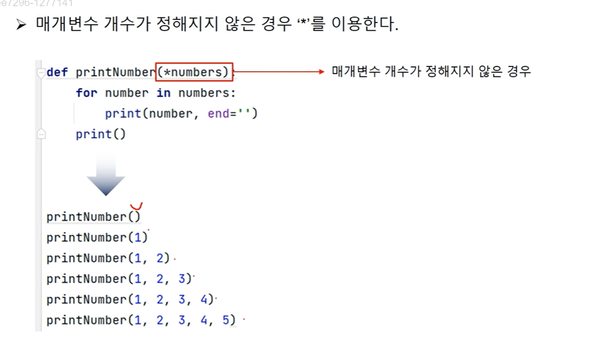 ㄴ 매개 변수 개수가 정해지지 않았을 땐 * 붙이기(type는 튜플임)