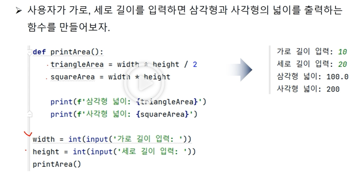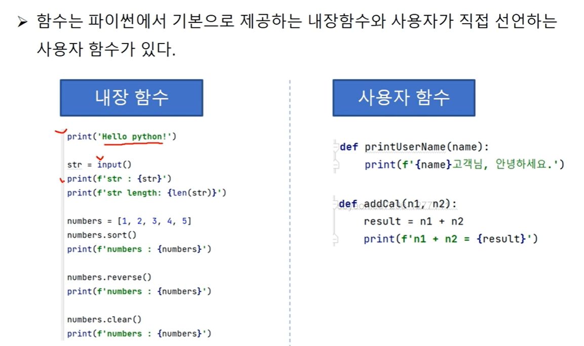 ㄴ 사용자 함수 선언 -> def 함수(매개 변수)