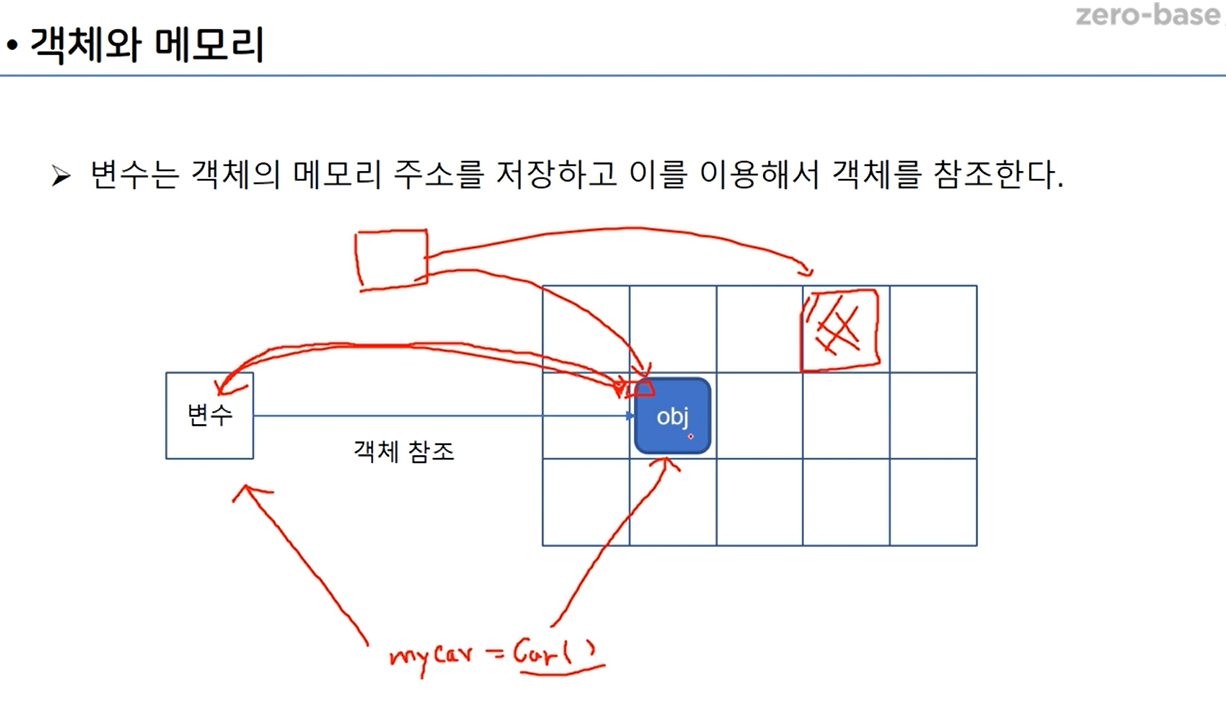 ㄴ 레퍼런스 변수에 객체가 아니라 객체의 메모리 주소가 저장되는 것