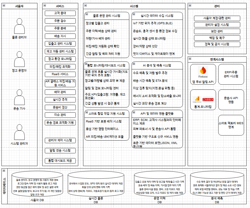 - 데이터 수집층: IoT 센서, OMS/WMS/TMS, POS, 앱 등