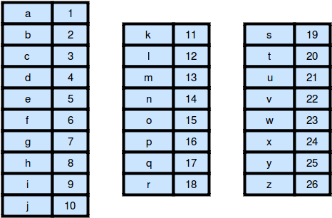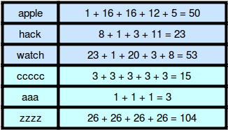 가중 문자열은 각 문자에 가중치가 할당된 영어 소문자이다. 문자의 가중치는 아래와 같이 a부터 z까지 1부터 26까지이다.