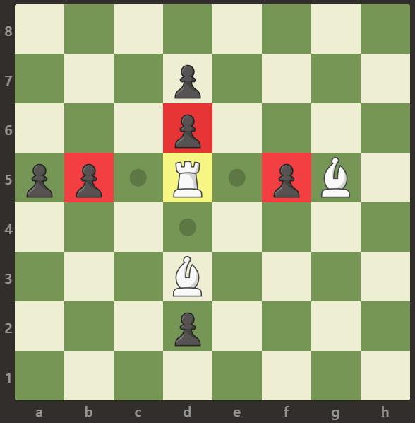 Explanation: 룩은 b5, d6, f5에 있는 폰을 공격할 수 있다.