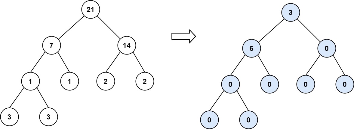 Input: root = [21, 7, 14, 1, 1, 2, 2, 3, 3]