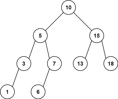 Input: root = [10, 5, 15, 3, 7, 13, 18, 1, null, 6], low = 6, high = 10