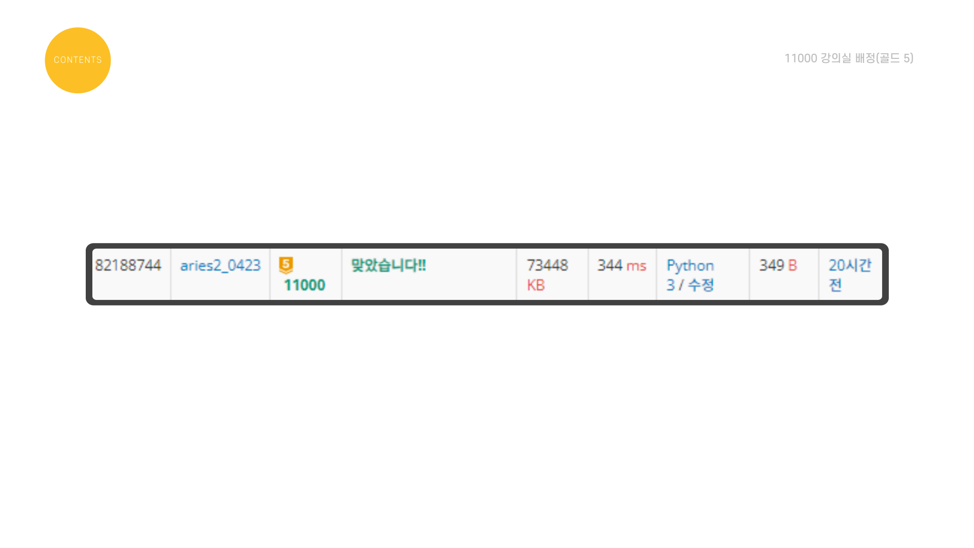 이번 주는 강의실 배정(골드 5), 버블 정렬(골드 1)이라는 문제들을 풀어보았다.