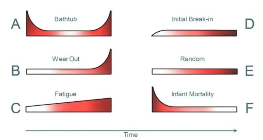 각 패턴은 시간이 지남에 따라 제품이 어떻게 고장날 수 있는지에 대한 인사이트를 제공하여 기업이 유지보수를 계획하고 설계를 개선하며 제품 수명 주기를 보다 효과적으로 관리할 수 있도록 도와줍니다.