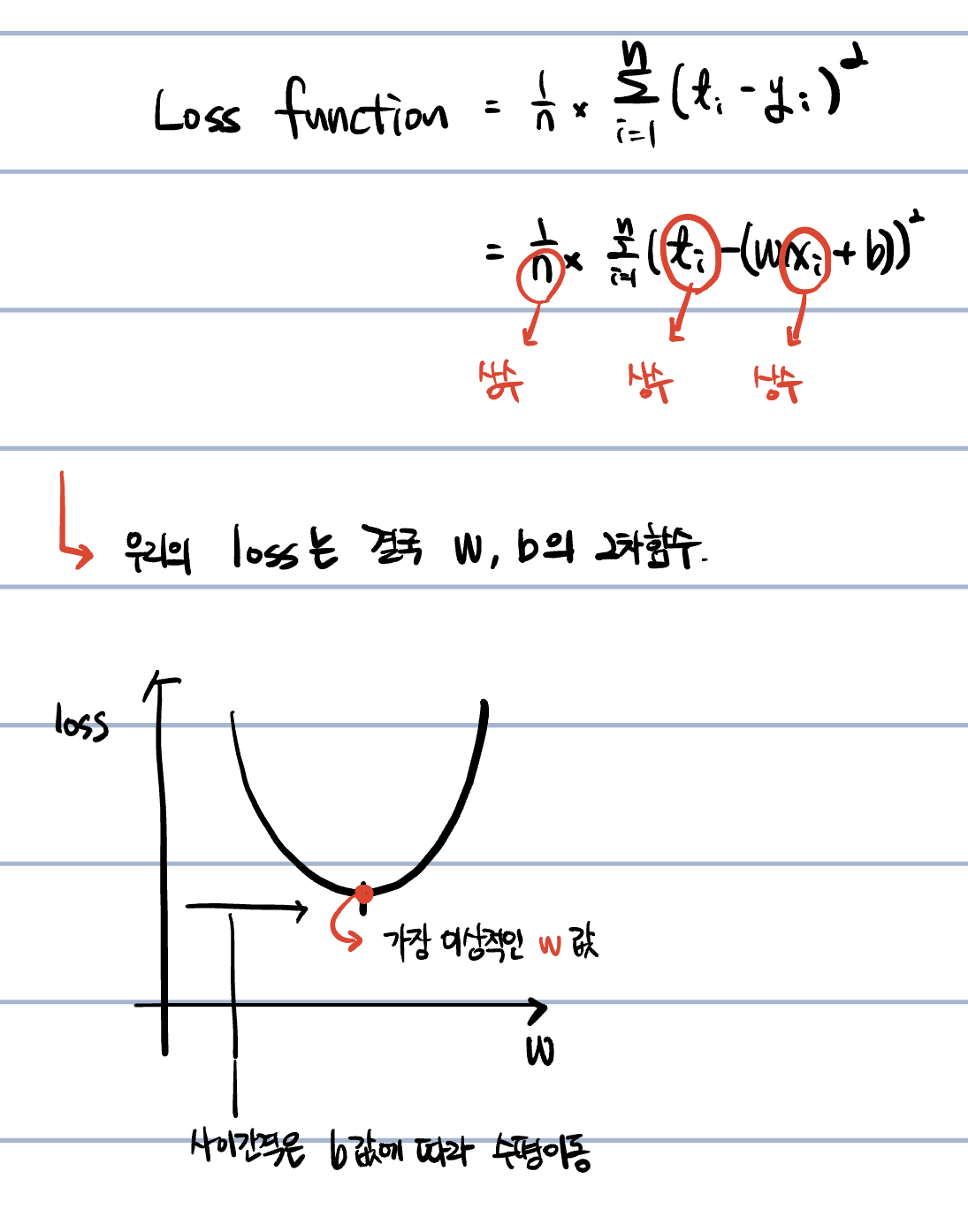 Loss 함수 : 내 모델이 좋은지 나쁜지를 판단하는 함수. 즉, 우리는 Loss 함수로써 MSE 를 사용하게 되는 것이다!