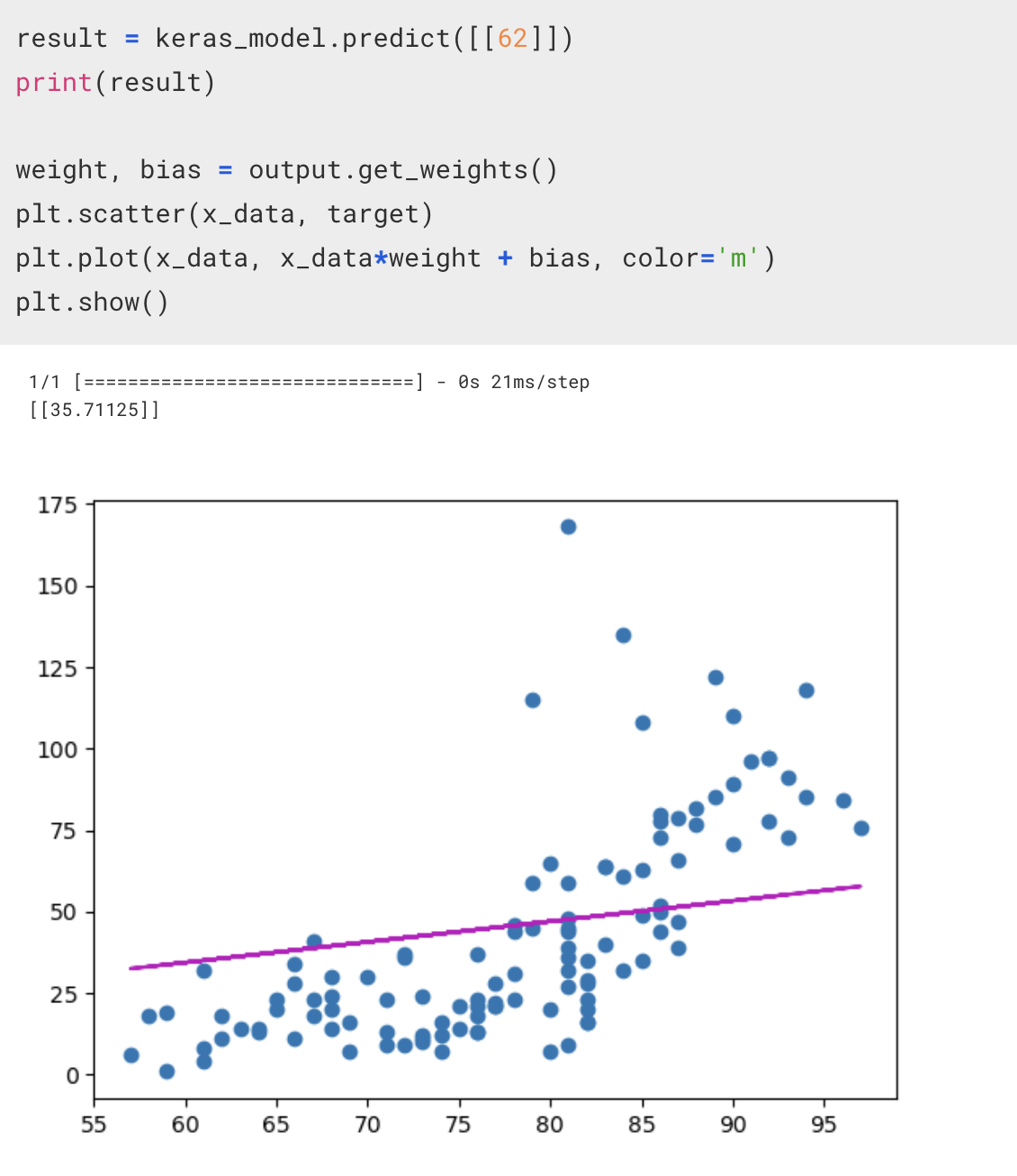 하지만 독립변수의 갯수에 상관없이 최종적으로 리턴되게 되는 결과값은 한 줄의 데이터가 나오게 된다.