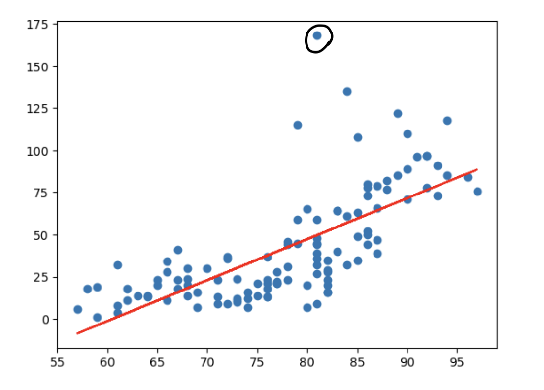 위쪽에 솟아있는, 일반적인 라인과는 완전히 동떨어진 값에 대한 처리가 필요하다.