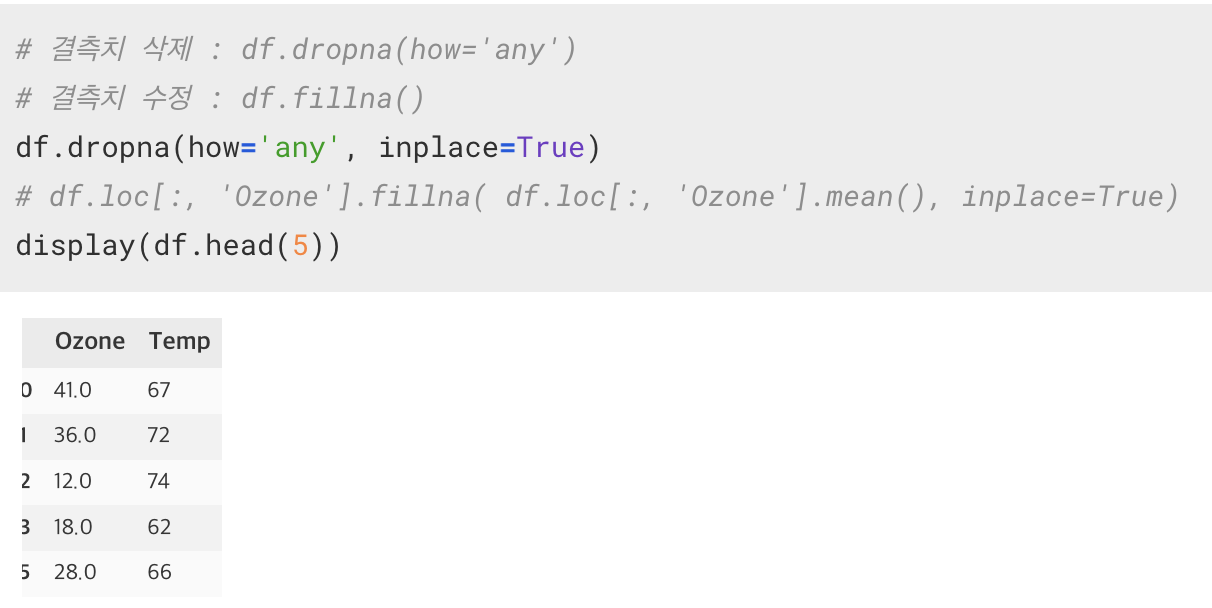 결측치 처리(보간/삭제)