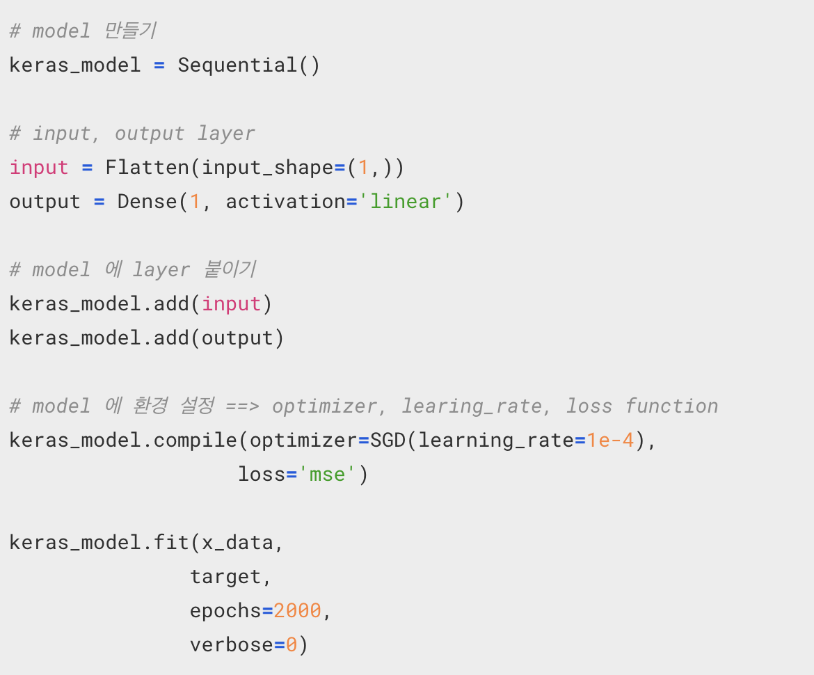 그 중 1. 타입인 Regreesion(연속숫자) 타입으로 사용할 때 사용하게 되는 것이 linear regression model 이라고 하게 된다.