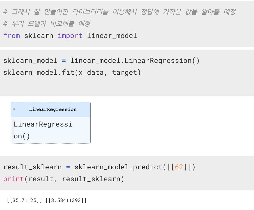 내가 만든 모델의 결과값과 sklearn 라이브러리를 사용해 얻은 결과값에서 차이가 보이는 이유