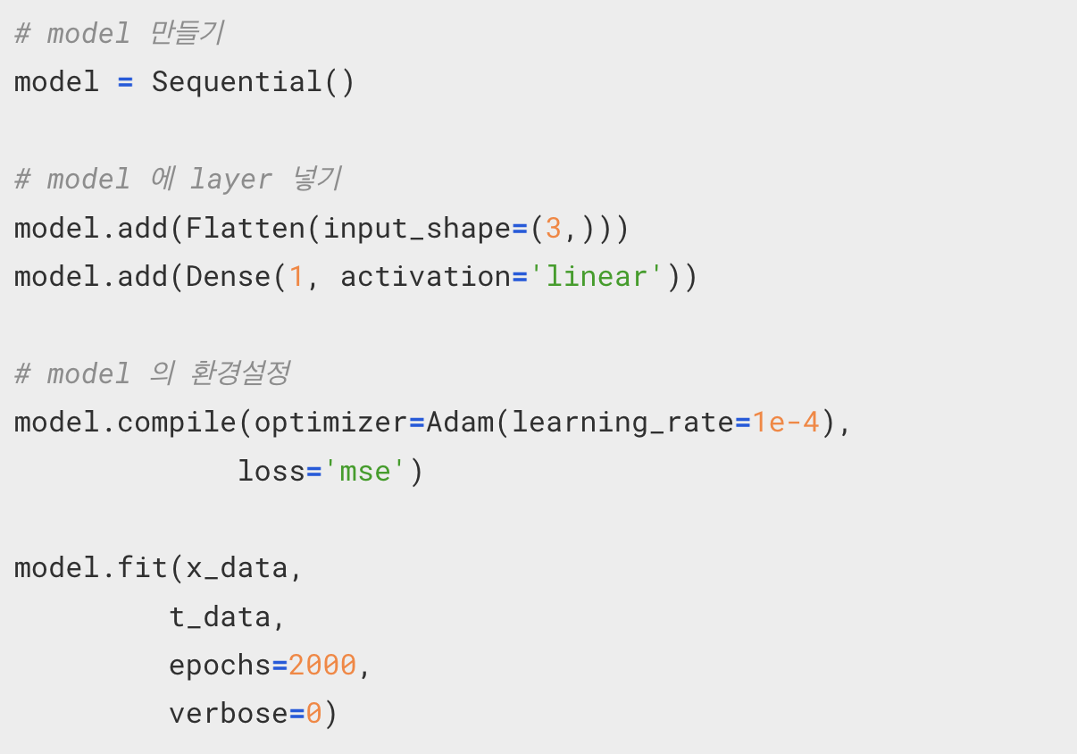 모델 객체를 만들고, 레이어를 추가하는 것들은 단순히 모델의 틀을 잡는 것에 불과하다.