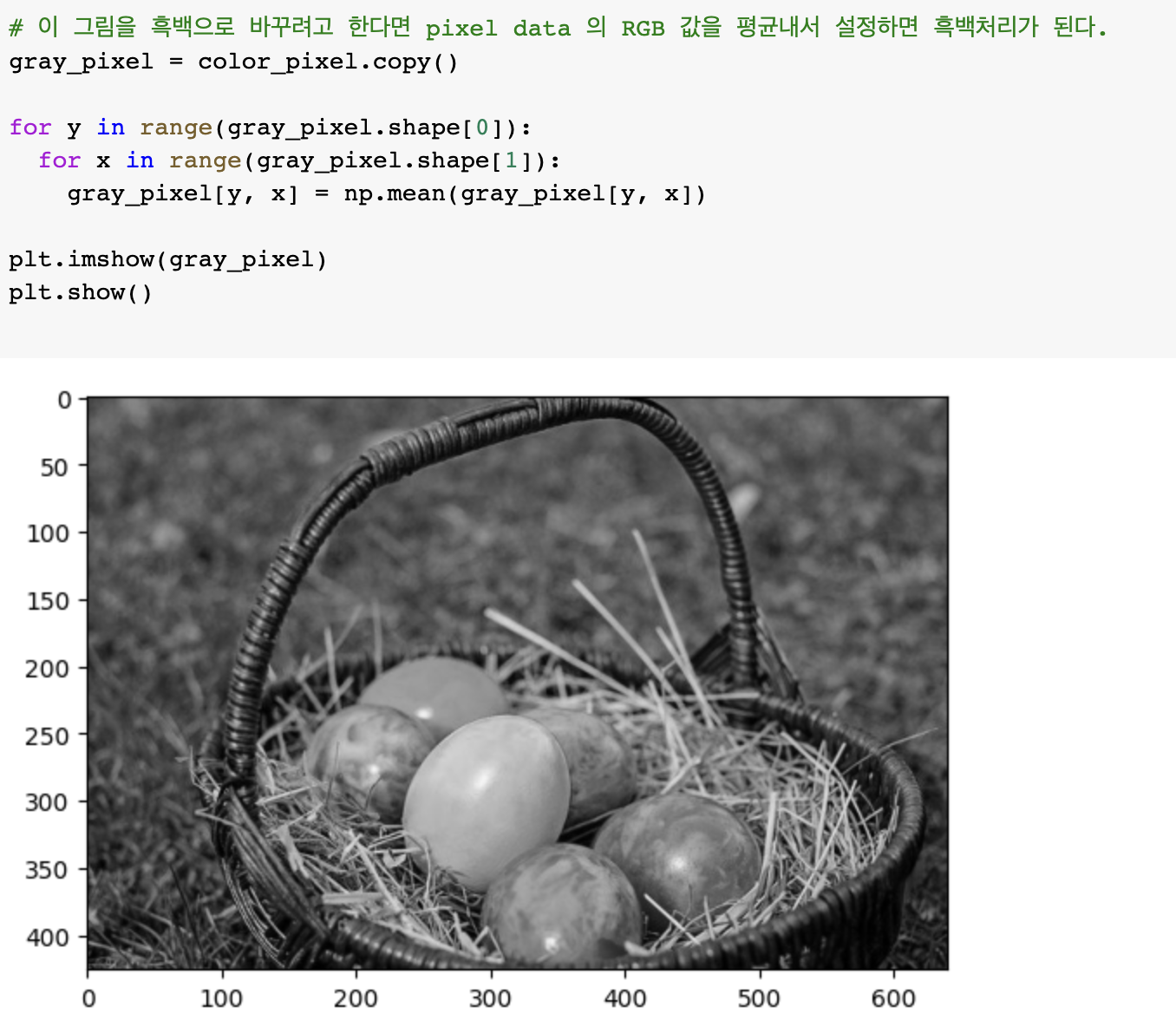 흑백 이미지의 경우에는 모든 R+G+B/3 의 값이 각각의 R, G, B 에 동일하게 들어가게 된다.