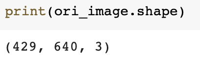 # (1, 429, 640, 3) => (이미지 개수, height, width, color)