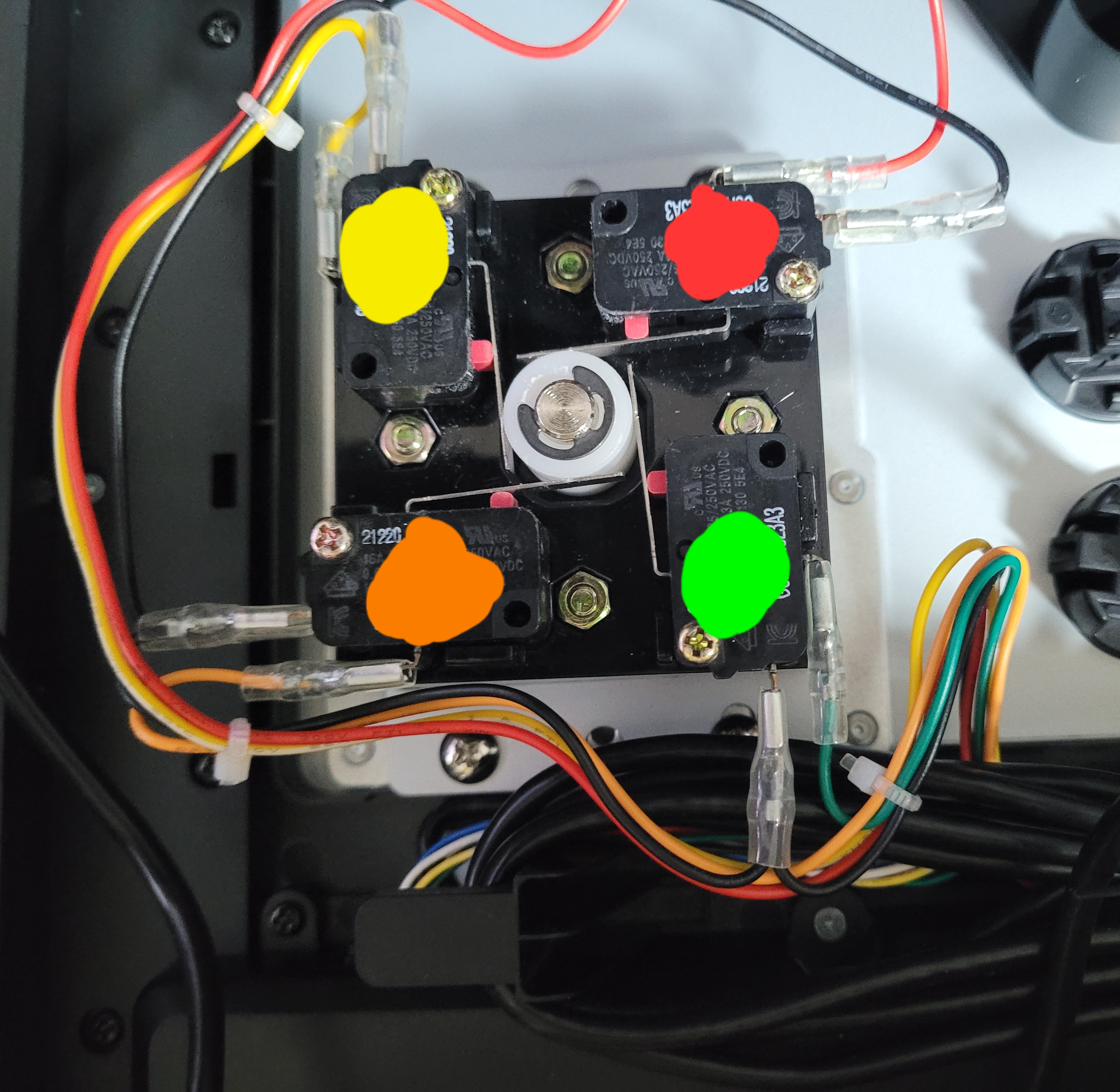 사람마다 레버 보는 방향이 다를 수 있지만, 꽂는 방향만 보면 빨강→노랑→주황→초록 순이다.