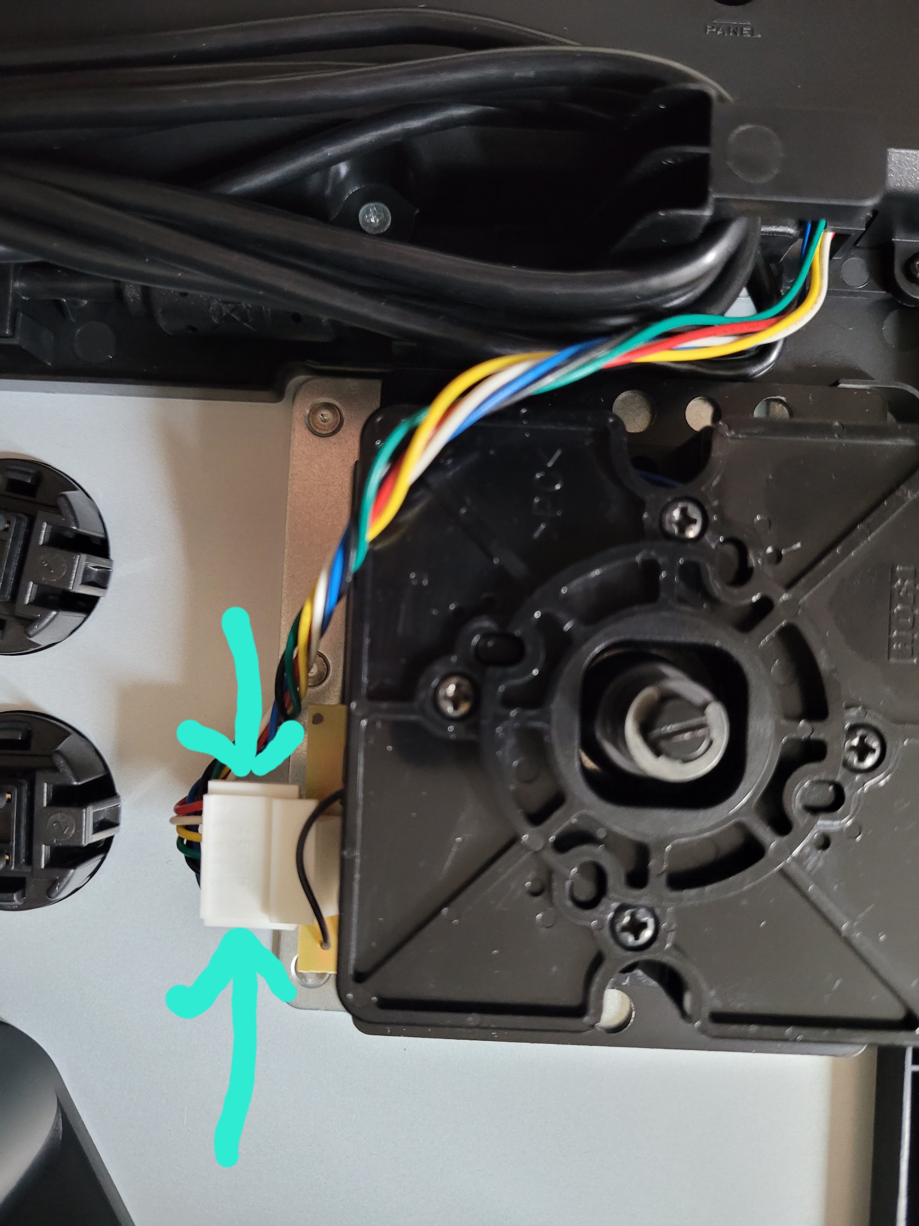 레버에 연결된 5핀을 분리해야 하는데, 화살표로 표시한 부분을 잡고 좌우로 살살 잡아당기면 빠진다. (유투브 참고)