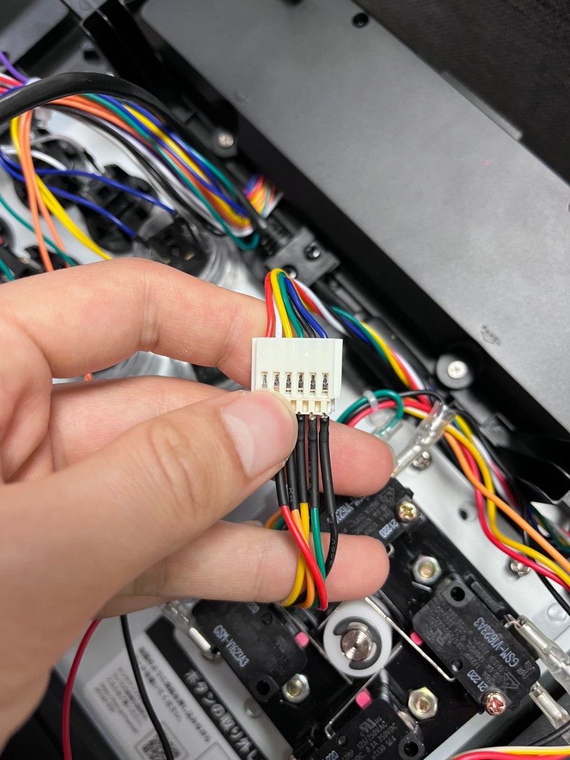 USB 케이블을 몸쪽으로 두고 상판(스틱이 있는 부분)을 위에서 볼 때 아래 사진처럼 색깔 순서를 맞추면 된다.