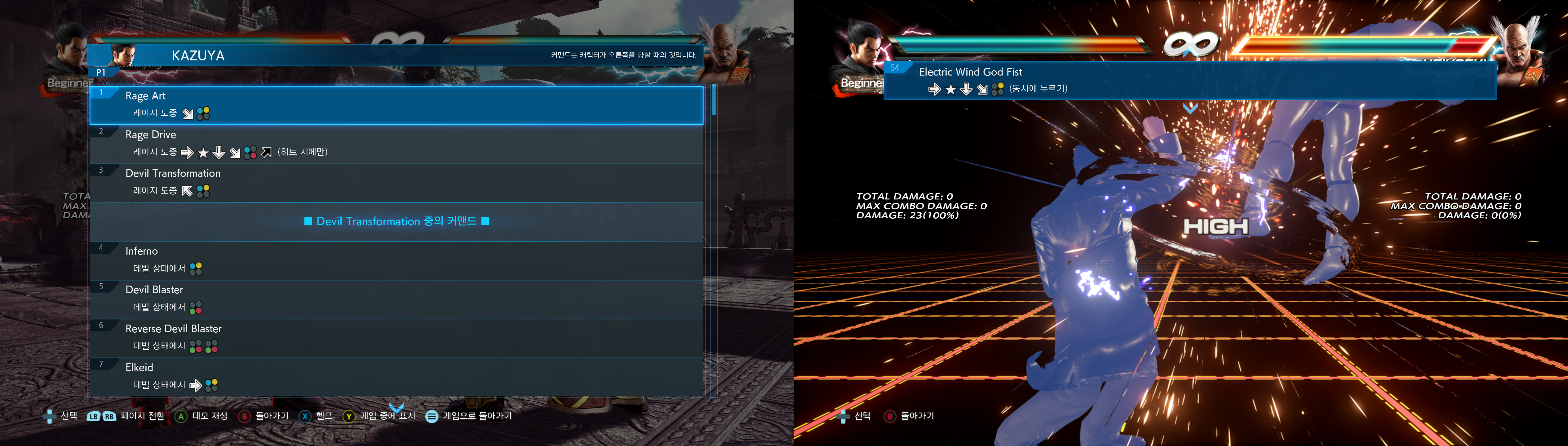 한국에서 철권을 하는 사람들이 꽤 있을 텐데, 기술명, 히트(혹은 카운터히트) 후 상황(상대 다운, 공중 등), 기술 특징(호밍기, 월 바운드 등) 등이 영어로 표기되어 있다.