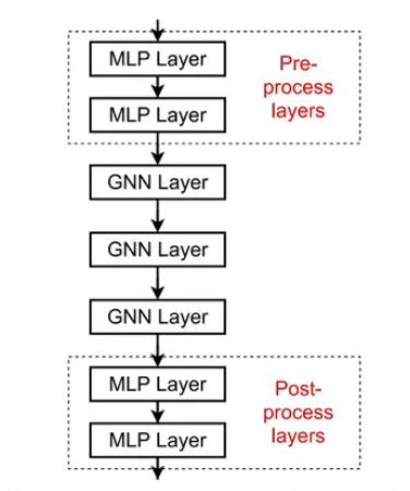 그래프 데이터 → GNN layer → 활성화 함수 → 정규화 → GNN layer → 출력 임베딩