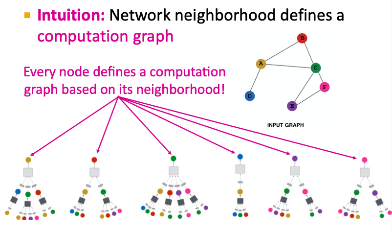 각 노드의 이웃이 그 노드의 계산 그래프를 정의함.