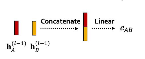 자기 정보와 이웃 정보를 연결(CONCAT) 후, 가중치 W(l) 곱하고 비선형 활성화를 적용해 새로운 임베딩 생성