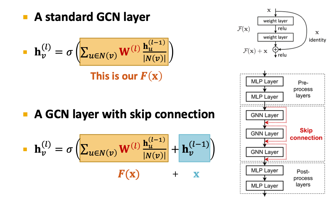 → GNN은 이웃의 정보 뿐만 아니라 자기 자신의 정보도 포함해야 함!!