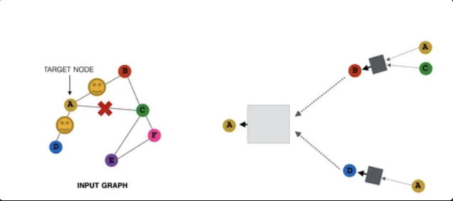 네트워크에서 각 노드는 자신의 이웃으로부터 정보를 단계적으로 집계한다.